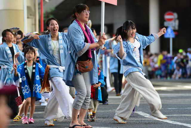 第四,五张是市役所的队伍,她们不与民间争锋,衣装素净,舞姿庄重,中规中矩。