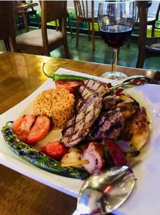 街上,按例商店很多,尤其是饮食店鳞次栉比。2月天气尚寒,是淡季,一间接一间的饭馆都很空闲,从业员站在门口嚷嚷着招呼客人。网上说土耳其料理属于世界三大菜系之一,因为没有当地人的特别指引,尝试过几次之后,觉得基本上大同小异。他们喜欢把各菜式放在一起,羊肉、牛肉和鸡肉,特喜欢配优葛。串烧很多很出色,很多地方站着巨大的“沙维玛”,有羊肉的也有鸡肉的。