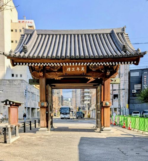 福冈市博多区博多站前一丁目,旧称“辻堂町”。这个“辻”是和制汉字,读音为shi,它的偏旁是辶,意为行走,辶上加了个十,即走到了一处十字路口。那辻堂町正是古时博多通往管理九州的官厅大宰府的官道上的一处十字路口。曾有记载说江户时代(1603——1868年)那路口立有一座门,称作辻堂口门。辻堂口门早已湮没在历史长河中,时光流逝转眼到了2014年,辻堂口门的位置上出现了一座新的门,叫做“千年门”。