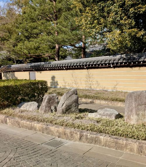 昔日拦腰切断承天寺的道路是较宽的双向通汽车的道路,从前没有正式的路名,而今日以千年门为起点的150米长的那条道路成了单向通车、两边有宽绰的步行道的道路,它有了一个爱称叫“承天寺通”。其车道宽五米,由扁平的石块铺就,犹如一条流动的小河,横在中间的青石板像似连接分断在两边的承天寺的桥梁。两旁的步行道上松树常青、枫叶秋红,灌木丛修剪的整整齐齐,地上长着山菊和青草,草丛间立着形状各异的景观石,布置成一派庭园风光,漫步其间悠哉悠哉……两边寺院的黄墙将它们夹在中间,显得静谧安详,适于游人放松脚步地徜徉。