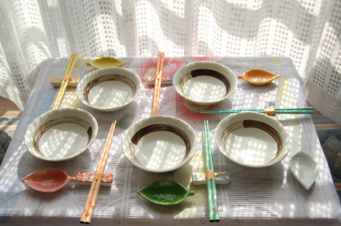 比起那些纯日式传统样式的漆器和陶瓷器,我更喜欢挑选那类参杂着中西色彩的各种消闲式零散餐具。这类餐具样式自如,无拘无束,有一种抽象中的对称和稳定。中式传统餐具的典雅和西洋餐具的华丽都浓缩在这里。它们对中国贵族餐具的典雅加以淡化处理,对欧式餐具的华丽铺张作了收敛加工。于是便有了这些日常日式餐具的简素含蓄。这种温和精致又纯朴多样的餐桌器具,让乐于考究而又不喜张扬的庶民接受起来既没有阶层上的心理障碍也没有价差上的经济障碍。算是一种含有自我体恤情愫的生活艺术结晶。日本餐具风格体现着日本文化对外来文化的积极吸取。他们在这方面做得大胆而又有节制,不拒绝好的,更不放弃自己的原有。这样不动声色地坚持吸取学习,就摸索出了一个以中产阶级为主流的社会。“中产阶级”不是一个经济能力居中的单薄概念,它还包括文化素质在内。