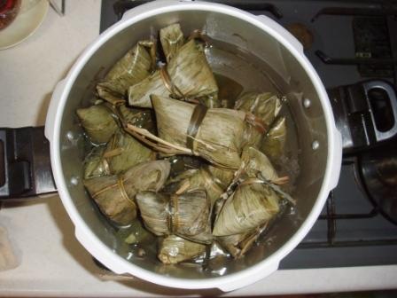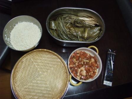 这次是第一次尝试肉粽,无论包法还是味道,自以为都相当成功。细心的公婆不仅买了粽子叶,还买了缠粽子的专用草绳,像马莲草的那种,很好用。我包的粽子也挺像那么回事,四个角,好几个面,拧着腰身,煮出来丰满粘实,喷着香,蔚为壮观。呵呵。肉香,米香,草叶香。加上老人的笑容,真是好节。