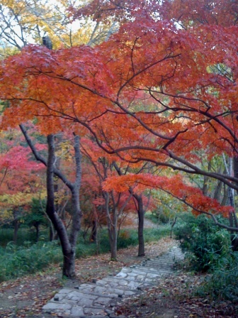 这个公园,地势天然,缓山上的植被多半属原貌。那里有植物们呼吸着的清香,大小枝干错落向上,无致,然和谐。落叶层层,根茎盘桓。慢步走,脚下是连结着天与地的无数生态命脉。